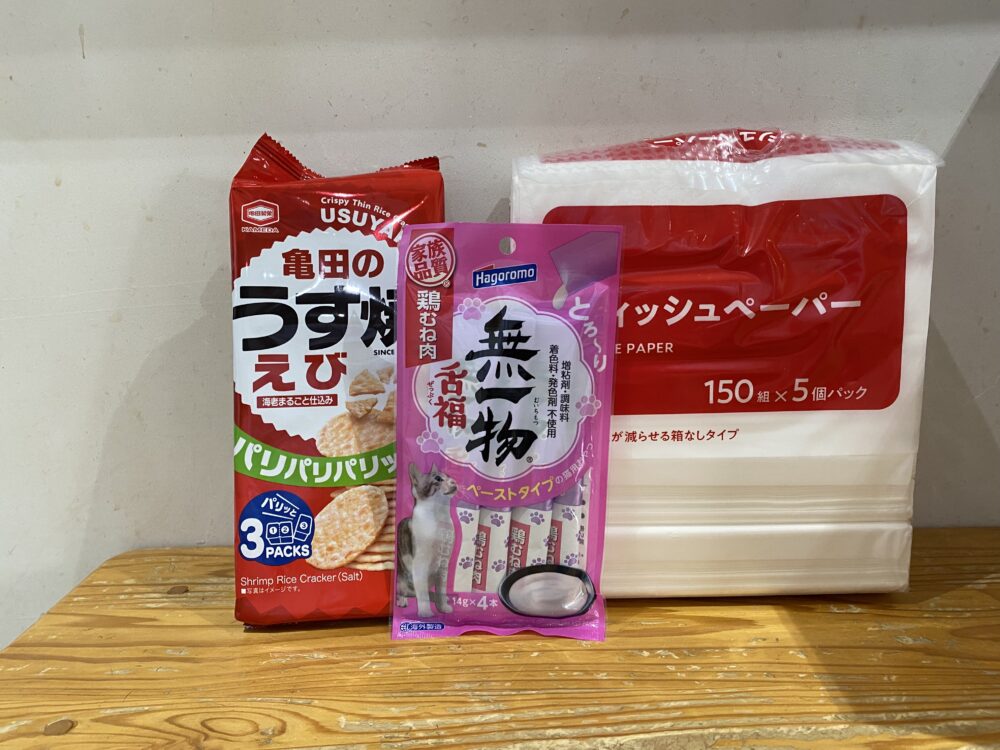 Y様からは、フード、消耗品、スタッフへのお菓子を頂きました。