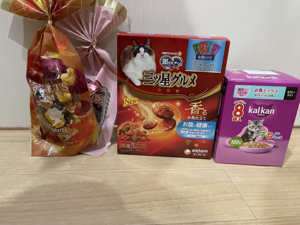 本日ご来店のT様よりフードとスタッフにもお菓子をいただきました✨