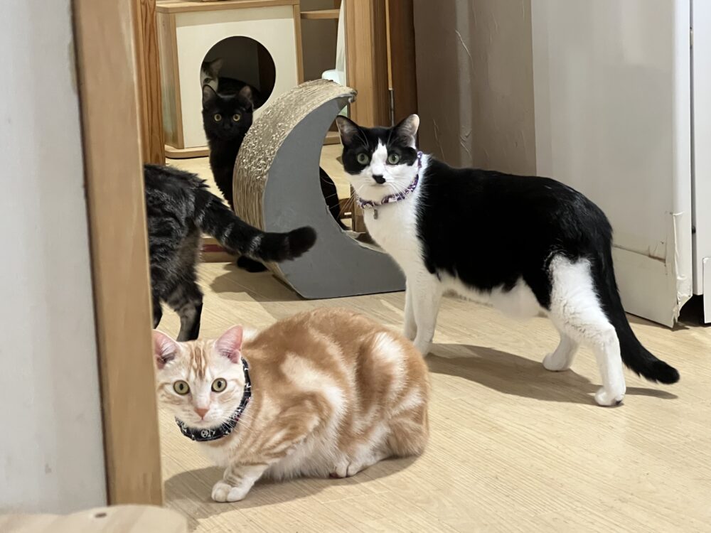でも、新入りのにゃんこたちが遊びに出てきて