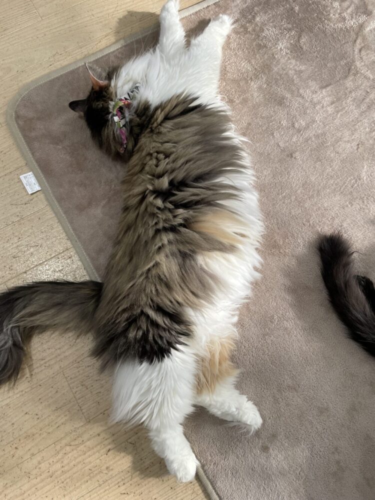 ホットカーペットでぬくぬくするムム君😆