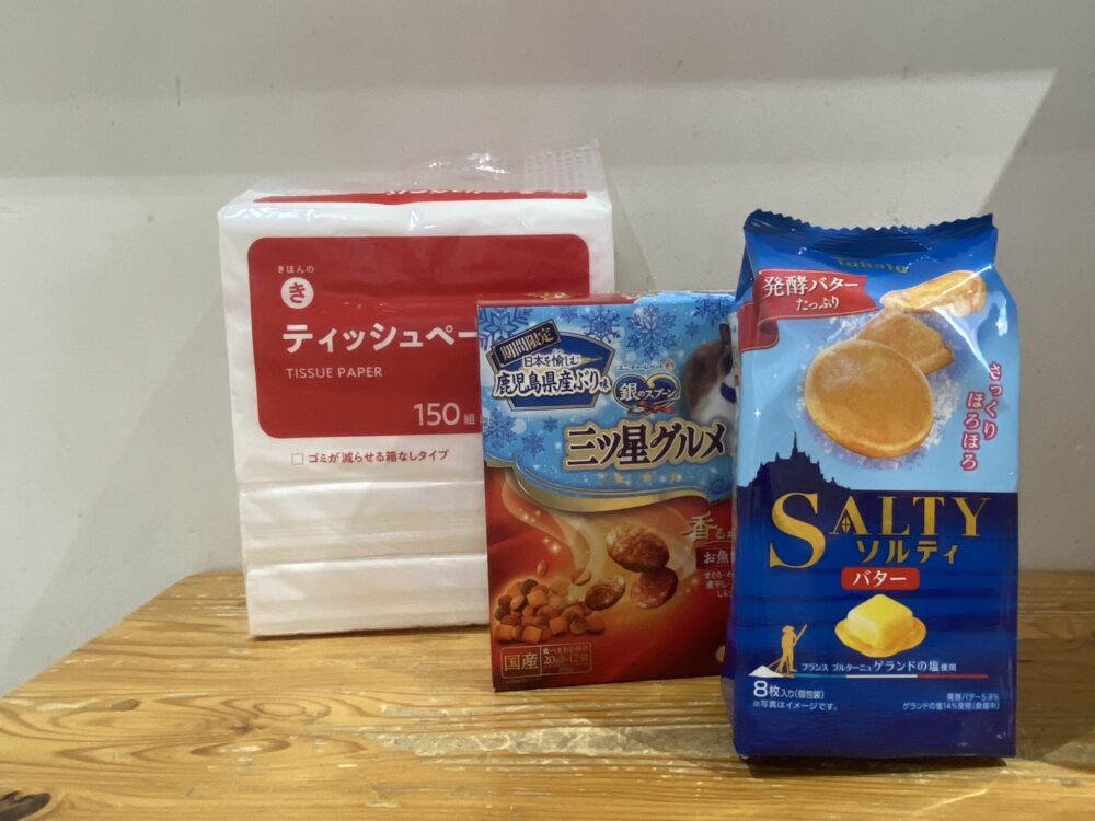 本日ご来店のY様より、ティッシュペーパー・フード・スタッフへお菓子を頂きました✨✨