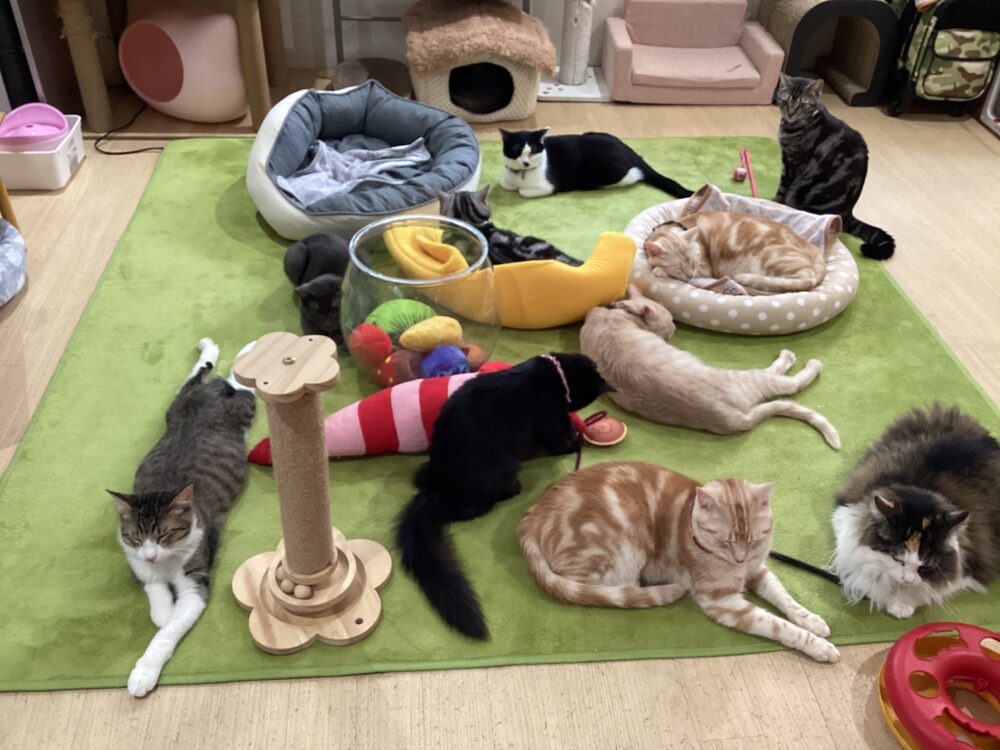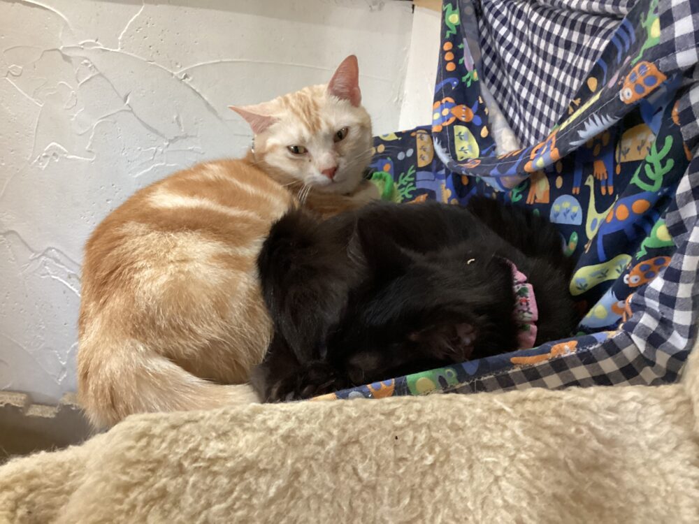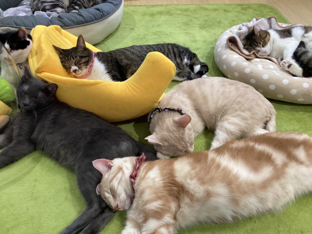 猫たちは、暖かなホカペの上でまったりしています♨️