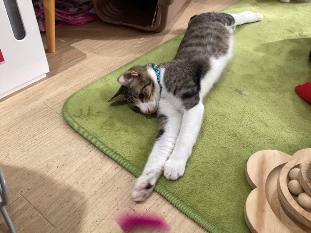 ムム君も寝ながら遊びます♪