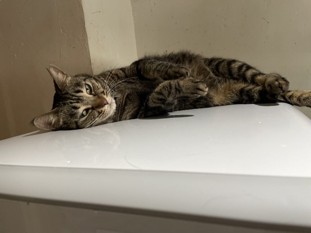 給茶機の上でくつろぐゆうりちゃん☺️