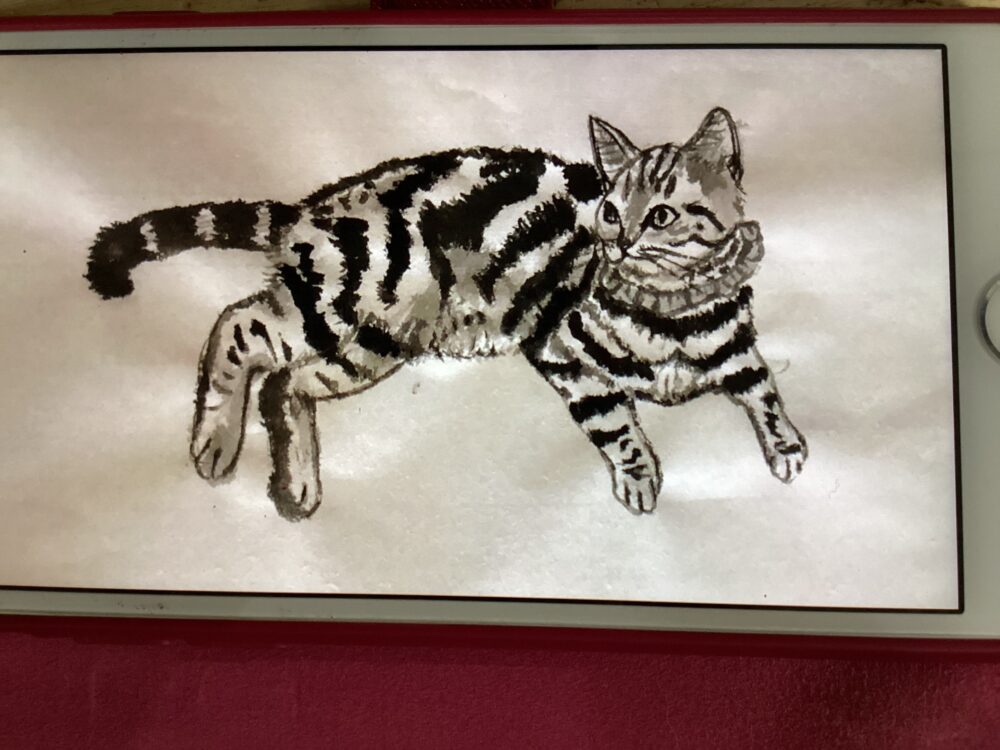 前回えこねこに遊びに来たときに、絵を描くために写真をお撮りになって帰られ、今日 描いた絵を見せに来てくださいました😻