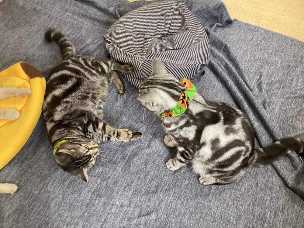 だいぶ過ごしやすくなりましたが、猫たちのシュシュも秋色🍂になりました😀