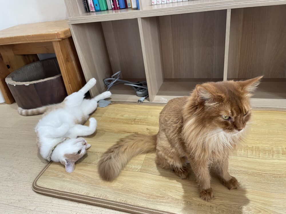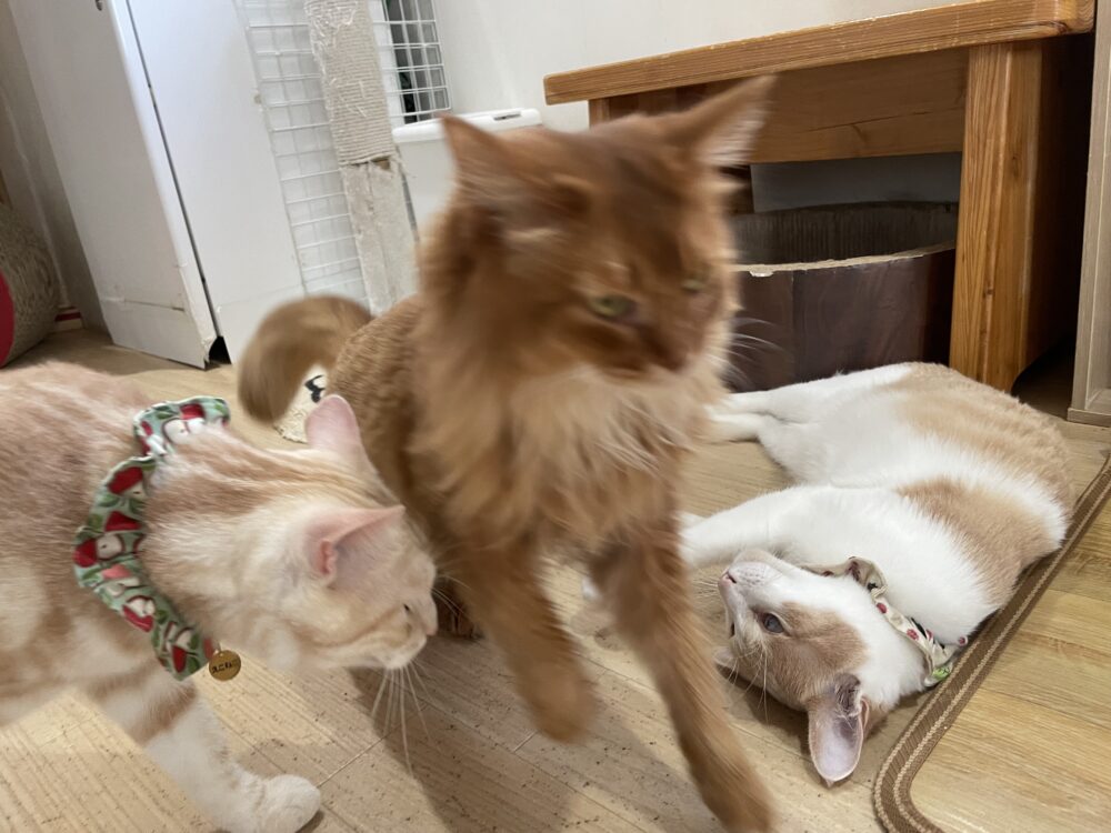 レント君とこむぎ君に挟まれて逃げるルミエールちゃん💨