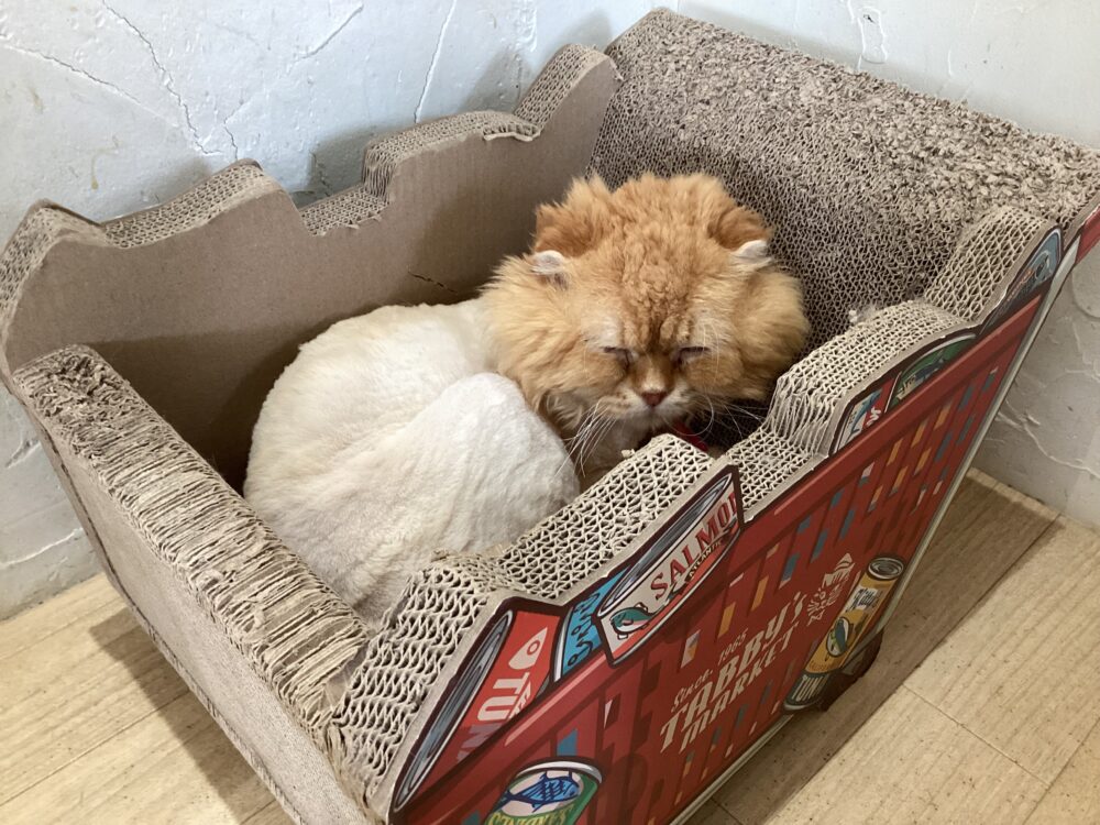 あけび君のお気に入りはカート型爪とぎ🛒