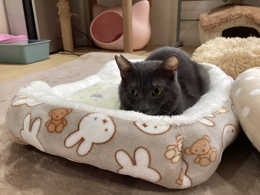 迅君はミッフィーちゃんのベッドがお気に入り